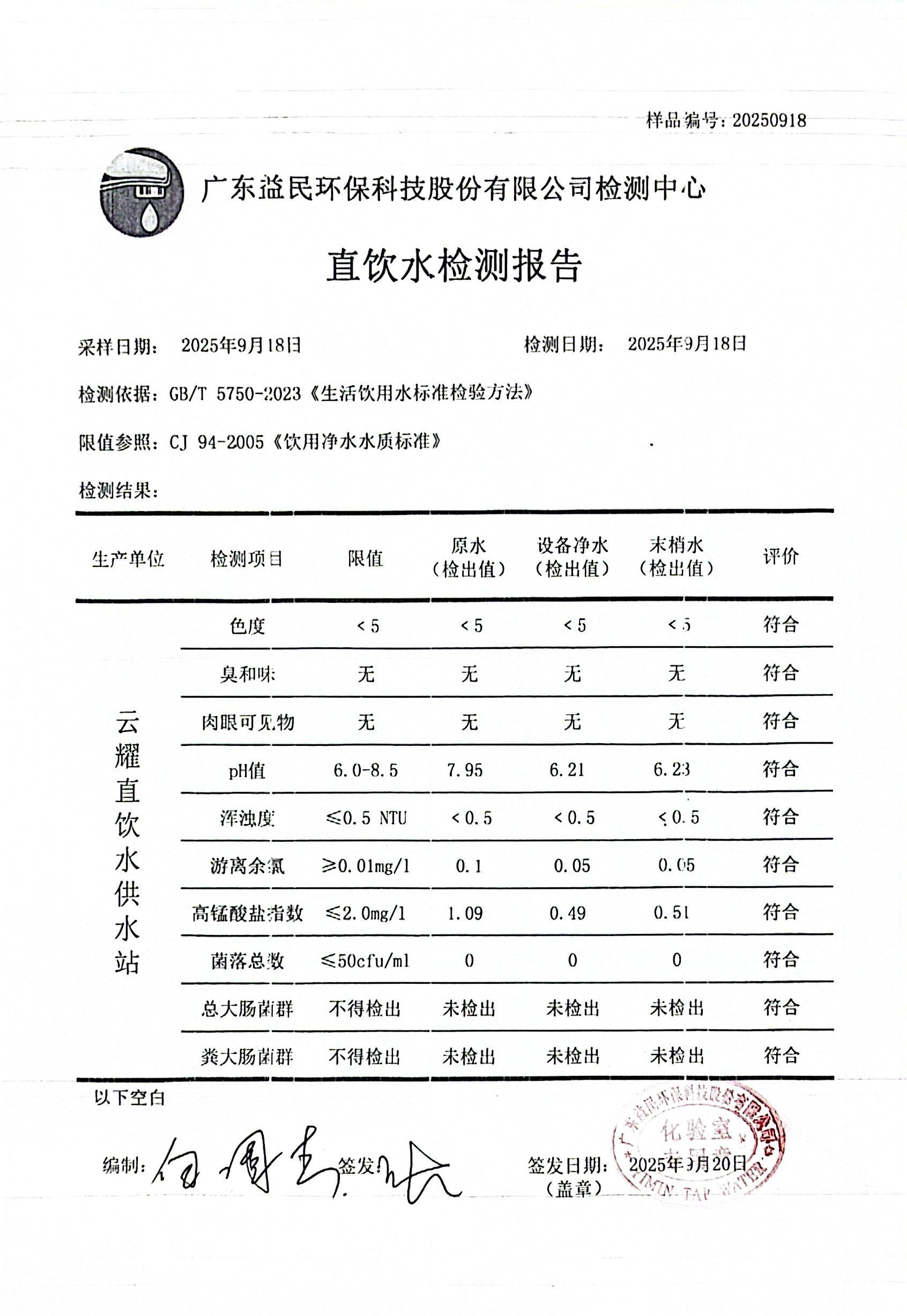 云耀新世界2025年09月18日水质检测报告公示