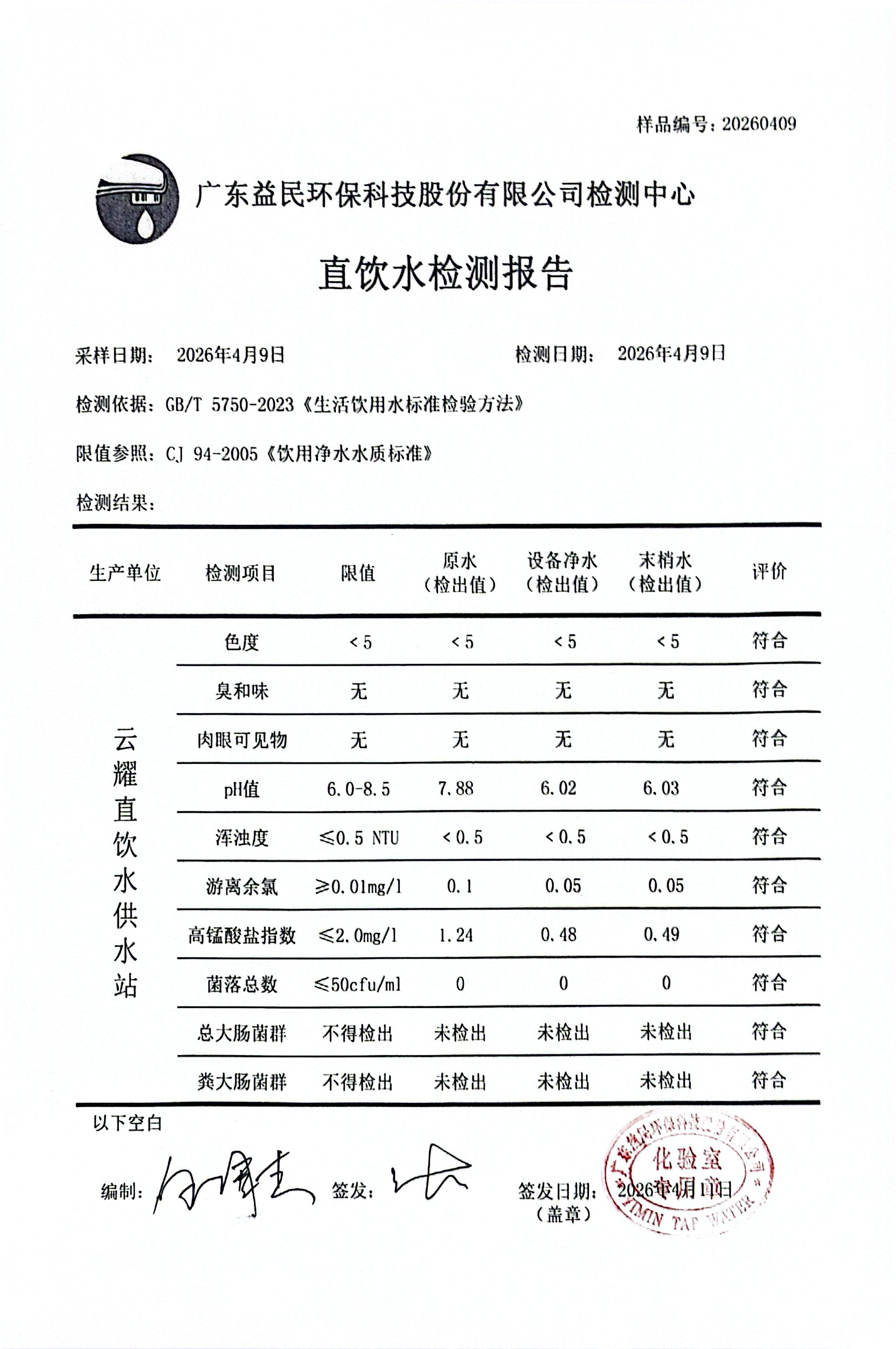 下一篇:云逸新世界2026年04月09日水质检测报告公示