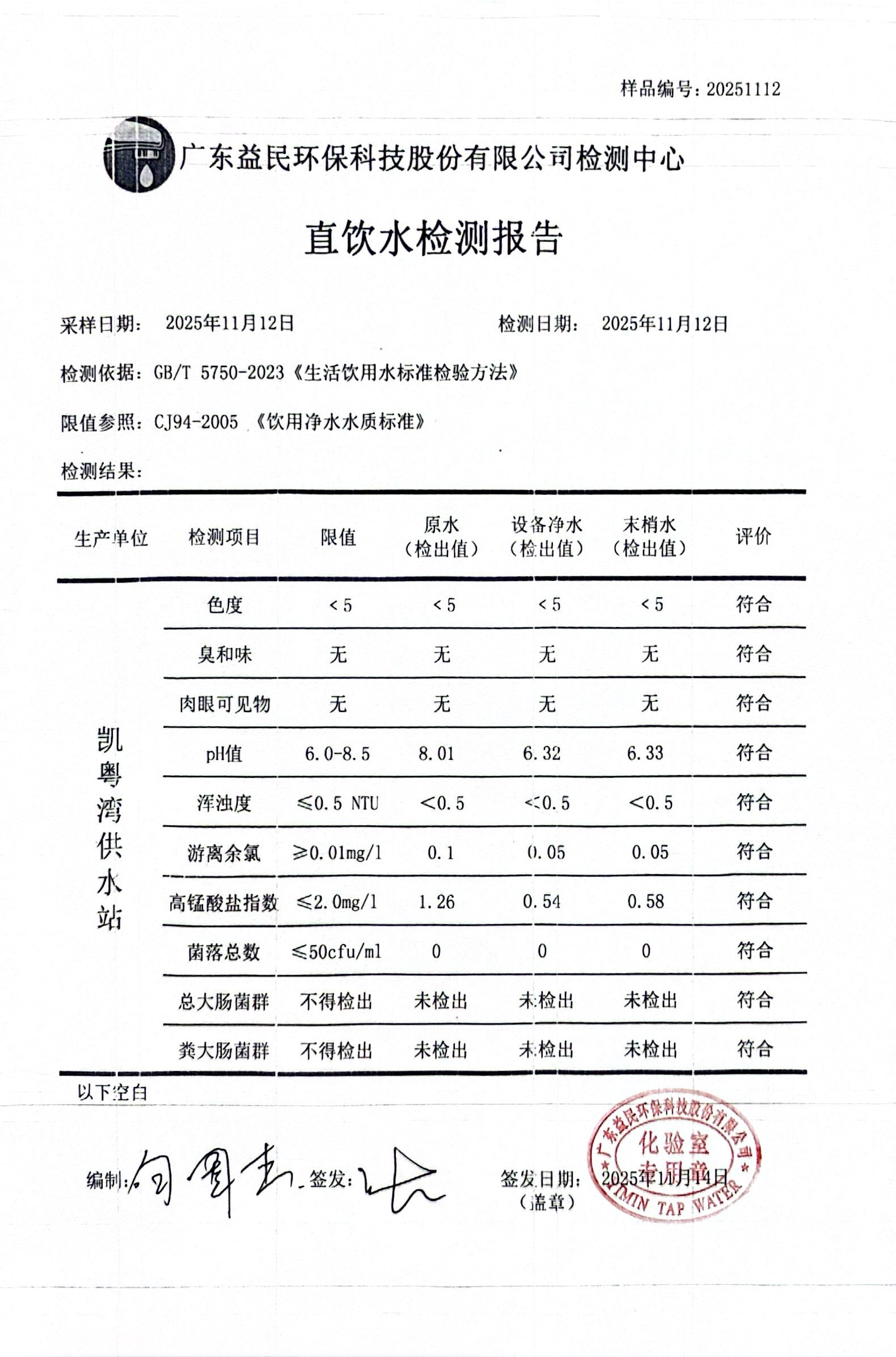 凯粤湾2025年11月12日水质检测报告公示